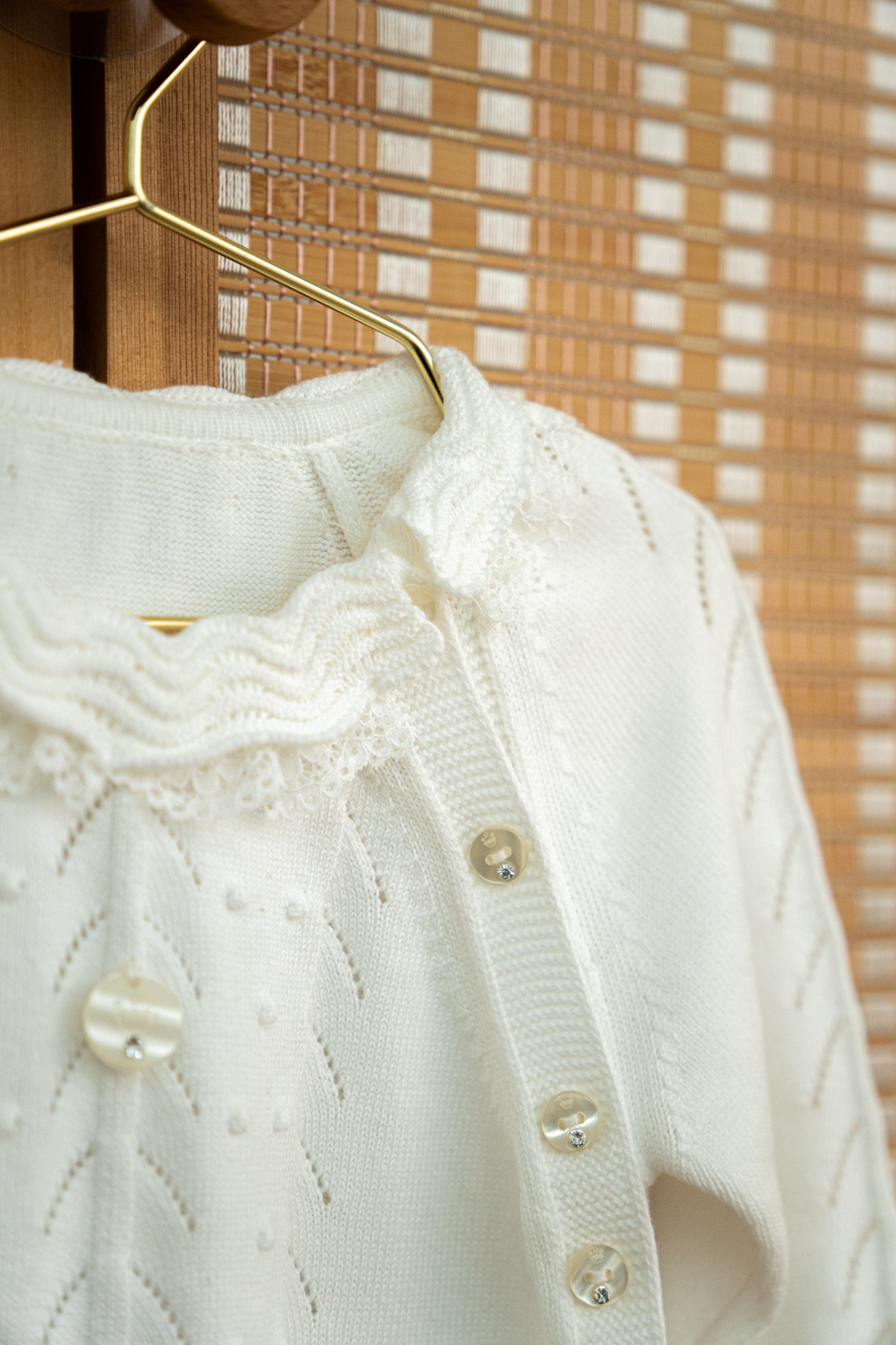 🤍 Lace-Frilled Collar — Adds a sweet, vintage touch for effortless charm.
