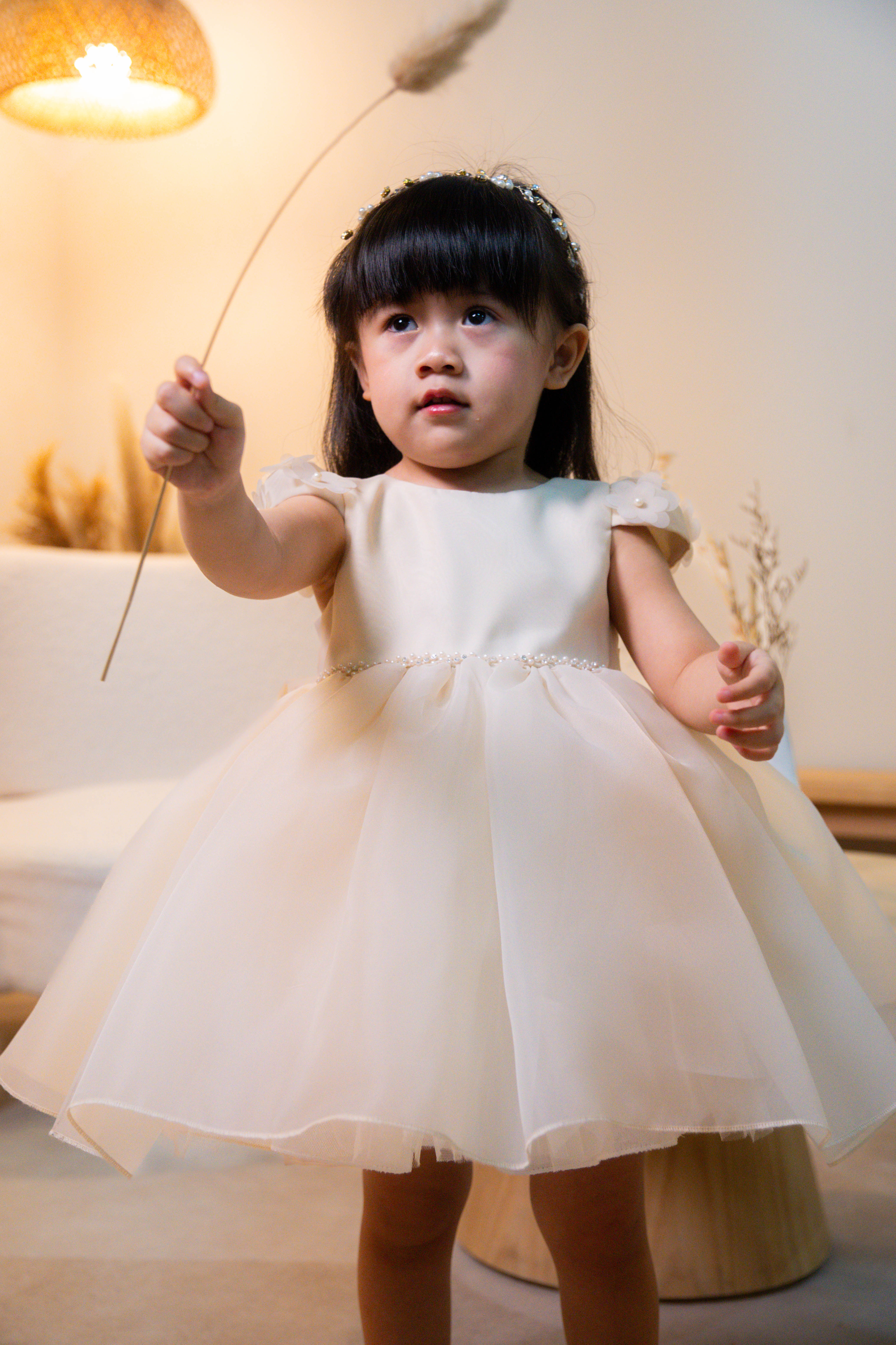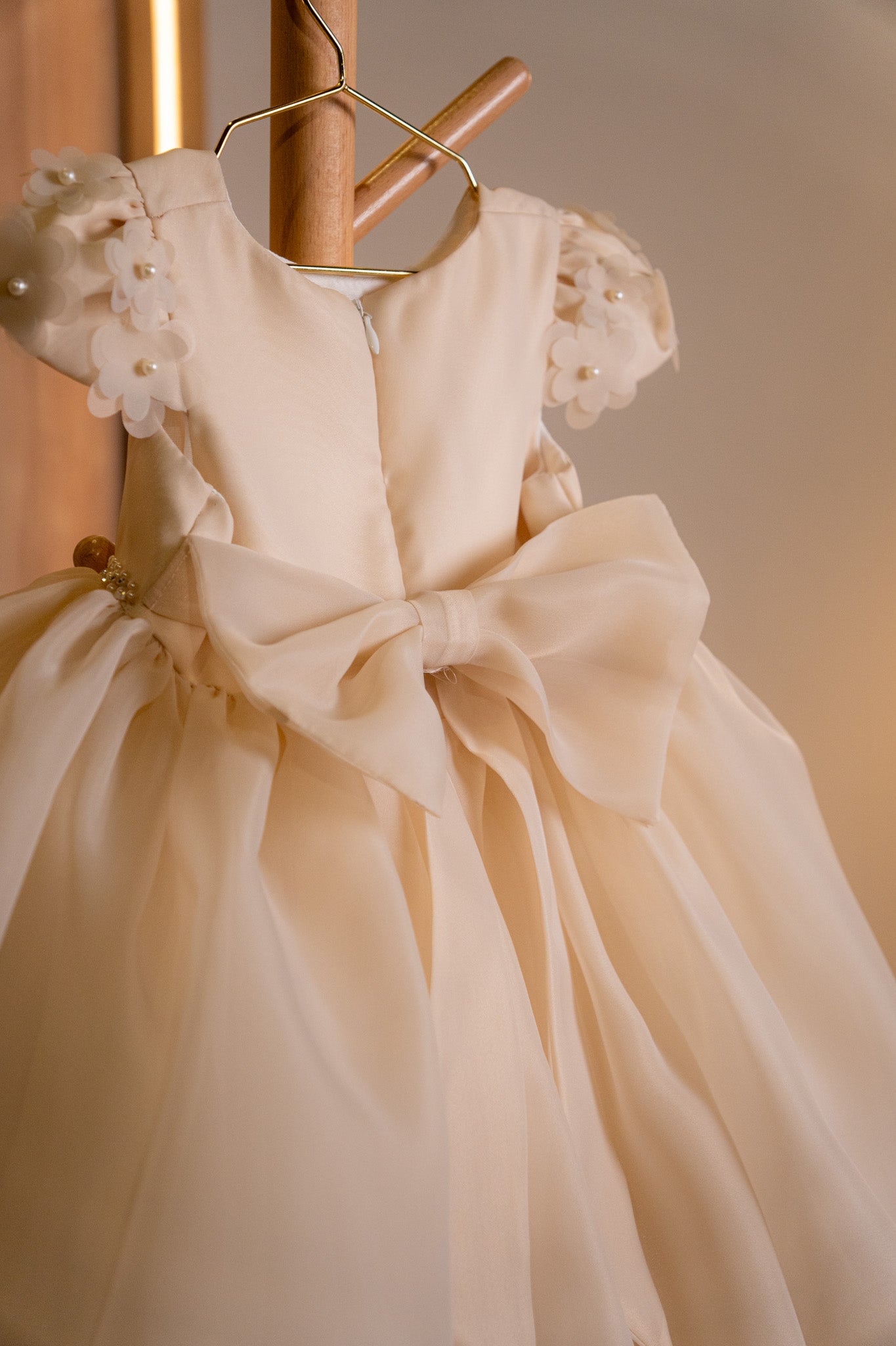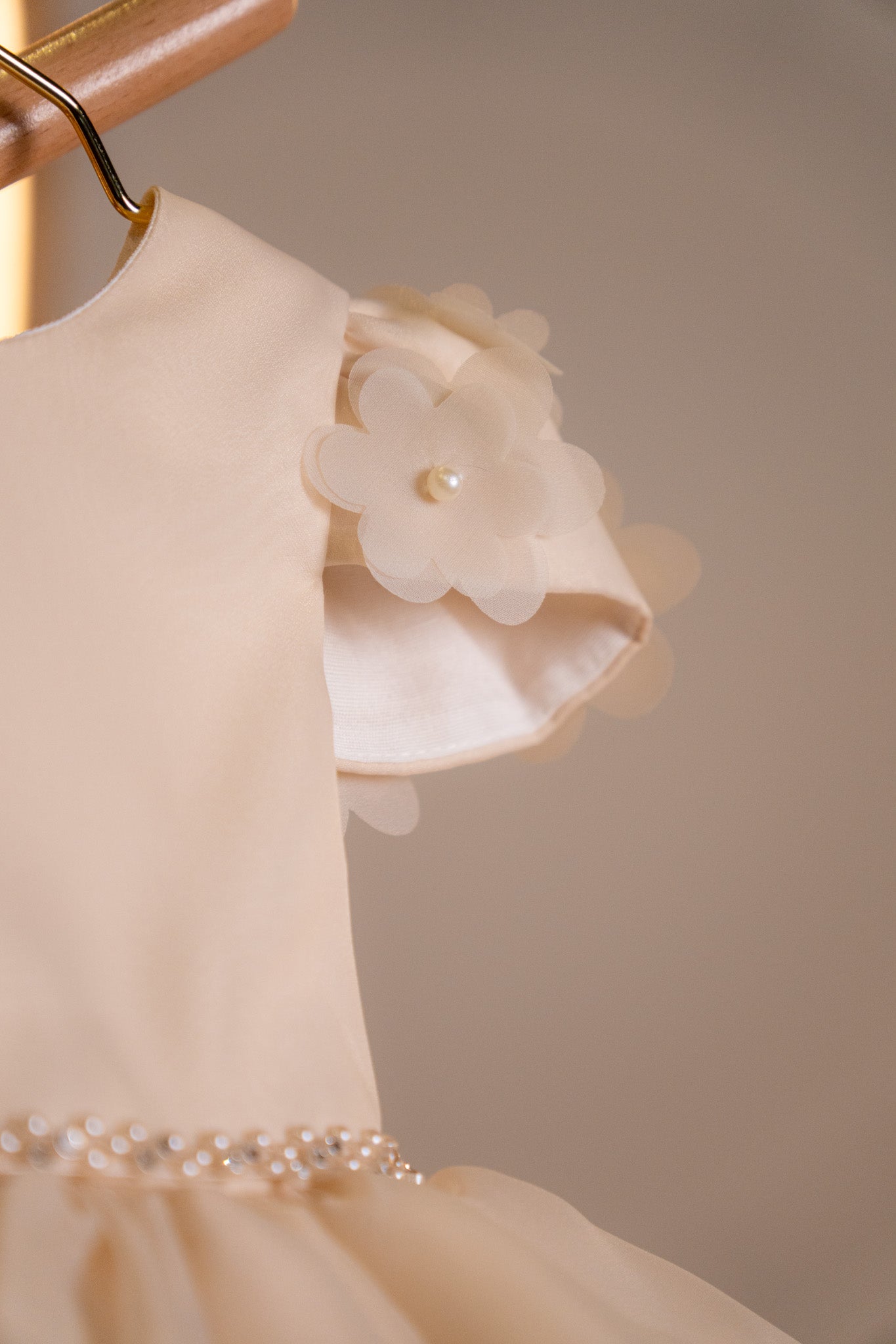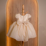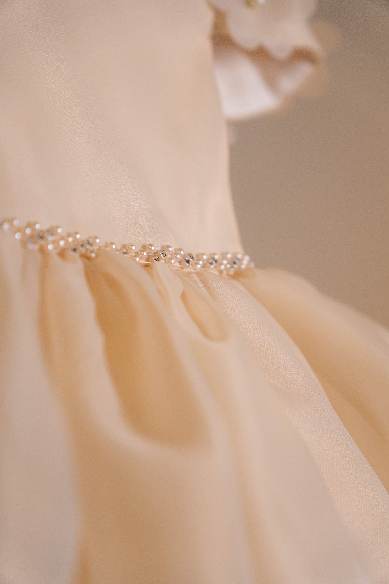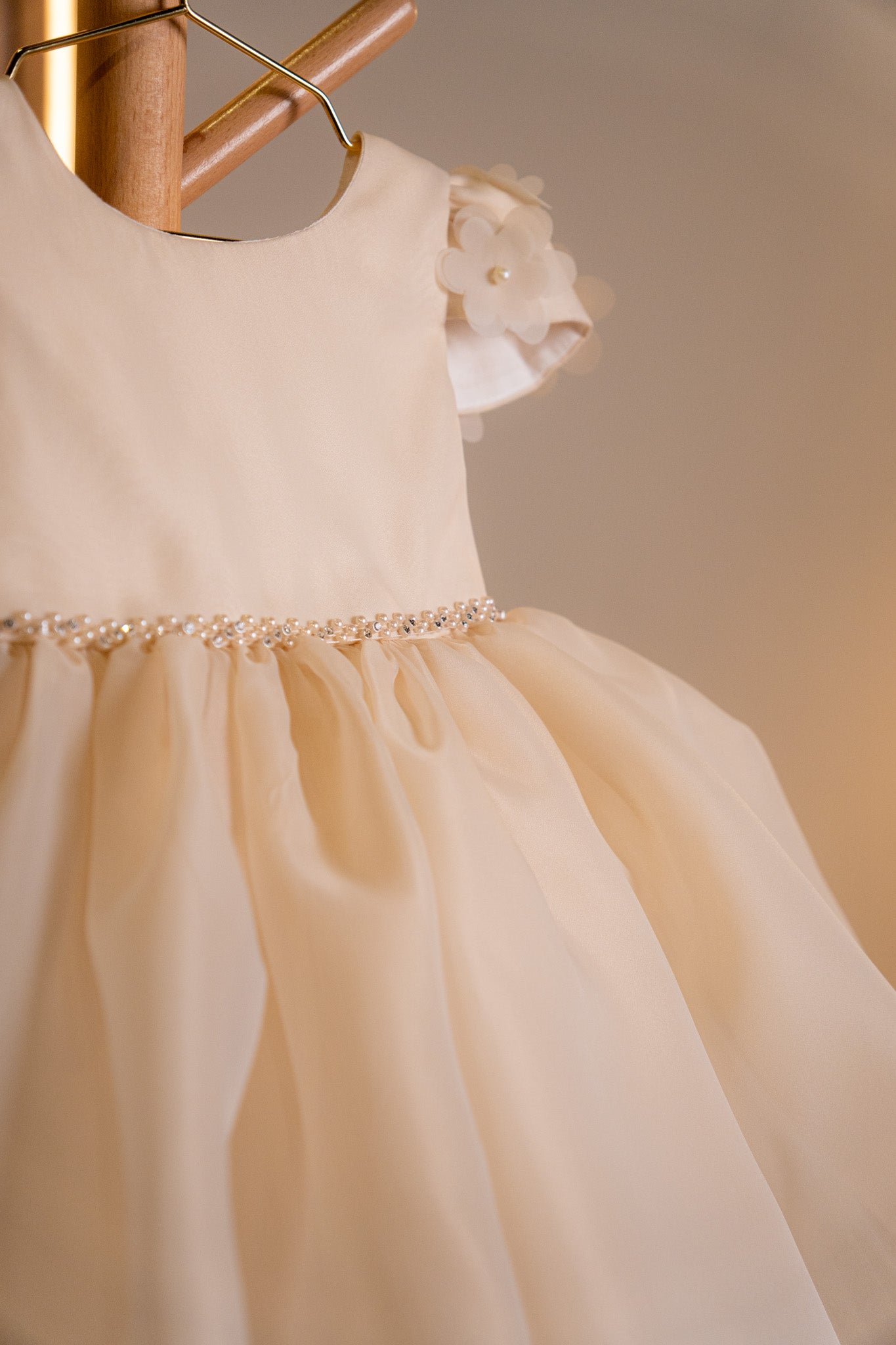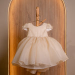 CHAMPAGNE TULLE DRESS WITH PEARLS